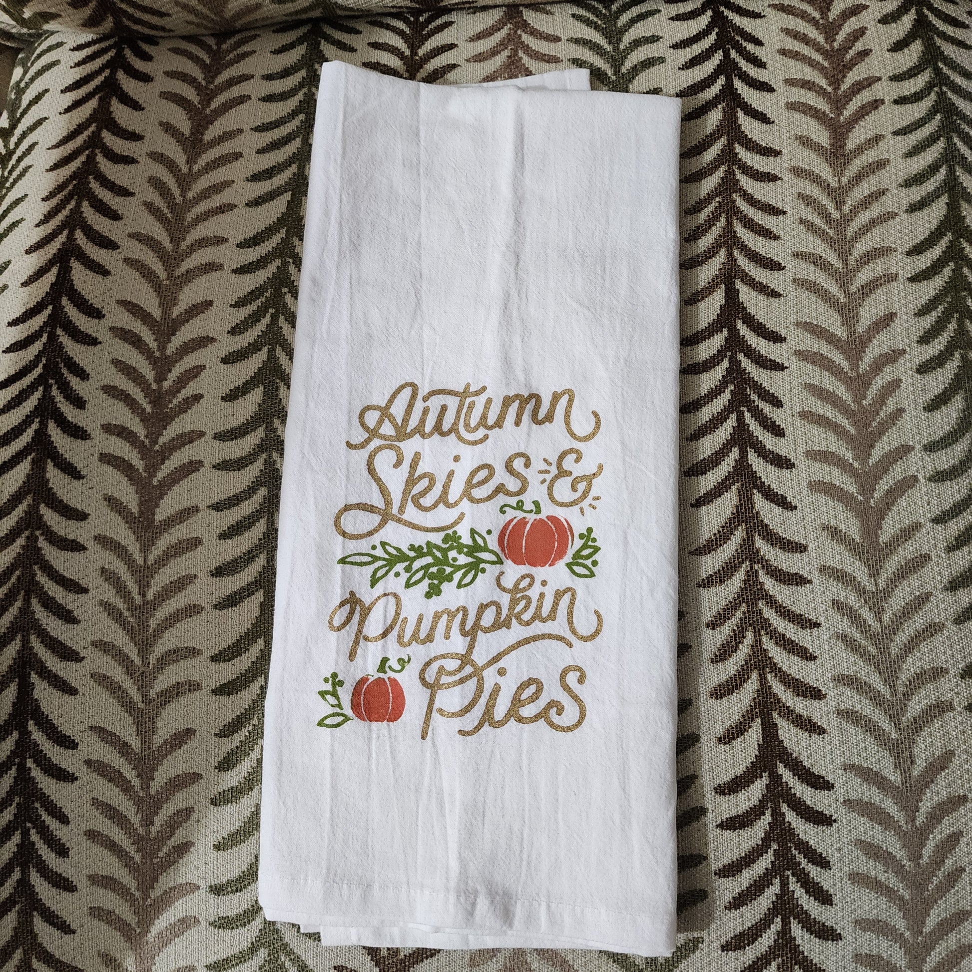 Autumn Skies and Pumpkin Pies Tea Towel